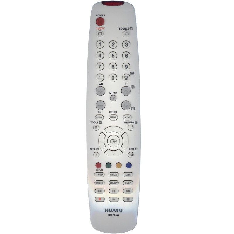 Универсальный пульт Huayu для Samsung RM-766W (белый) – это универсальный пульт, который заменяет множество пультов определенного бренда. В основном эти пульты не требуют настройки, просто вставили батарейки и пользуетесь, но иногда, когда настройка все-таки необходима, она сводится к нажатию всего двух клавиш. Из чего можно сделать вывод, что им могут пользоваться даже люди далекие от электроники. Его корпус очень часто совпадает с корпусом вашего родного пульта, поэтому у вас не будет привыкания к расположению на нем кнопок. Все они находятся на привычных местах.